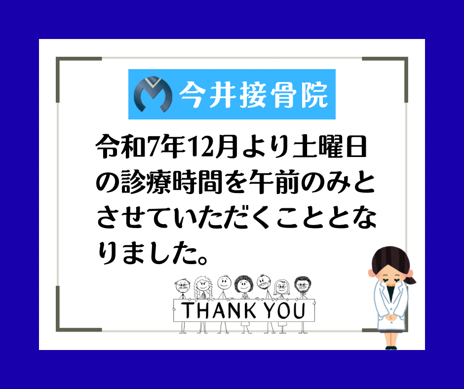 令和7年12月より、土曜日の施術時間を「午前のみ」とさせていただくこととなりました。