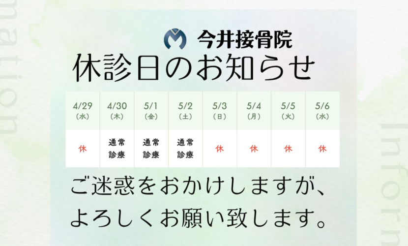 さて、ゴールデンウィーク期間中の診療についてお知らせいたします。